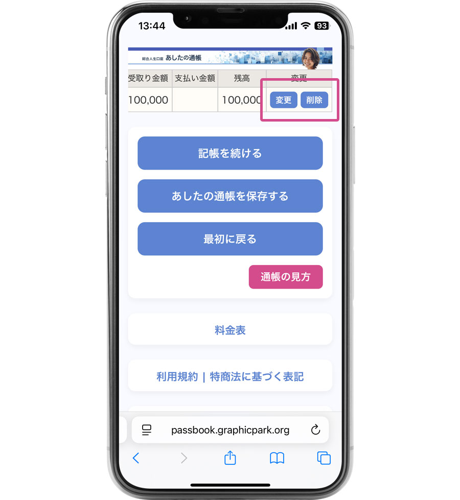 - [記帳の変更・削除]をタップすると、変更・削除の専用画面へ移動します。